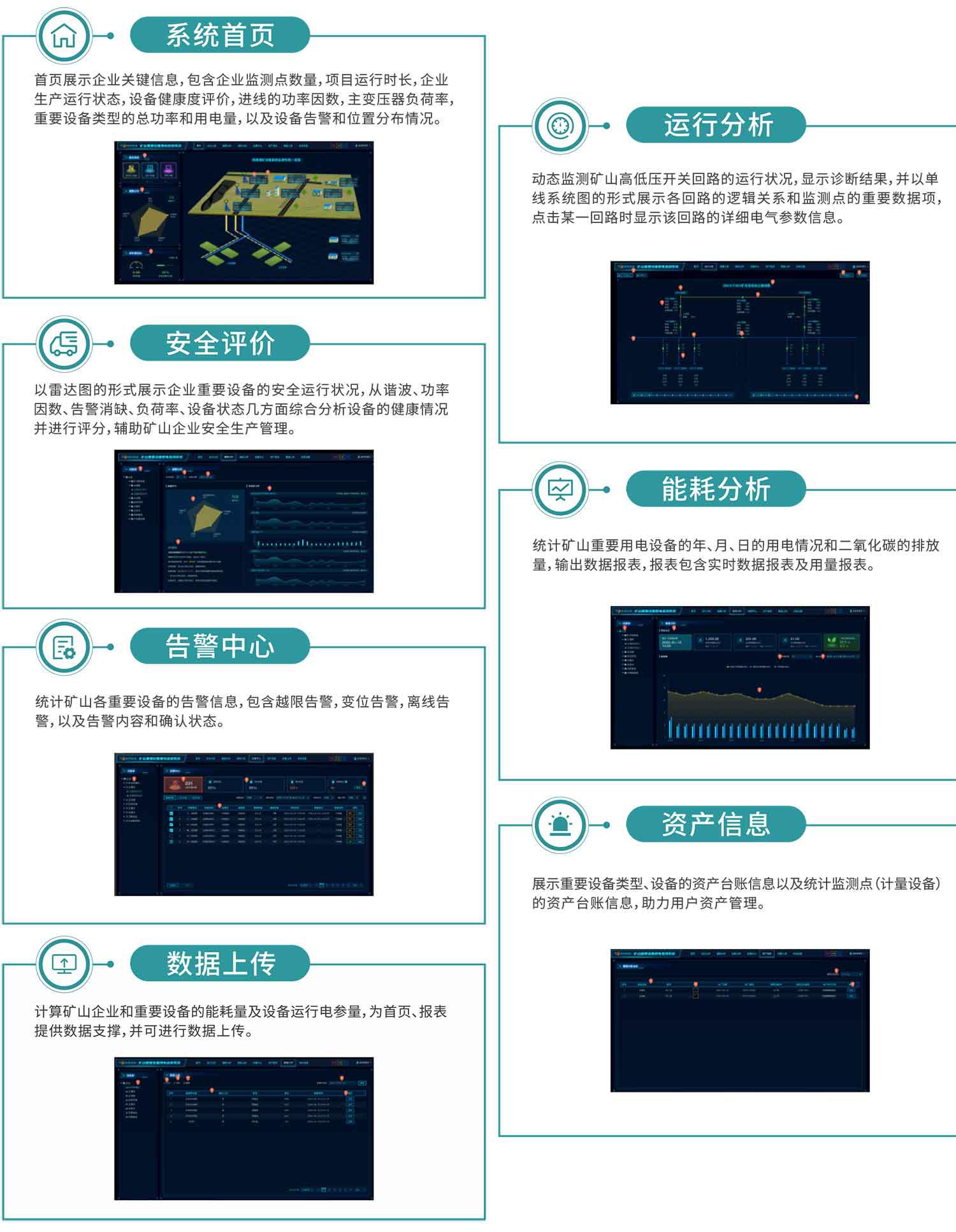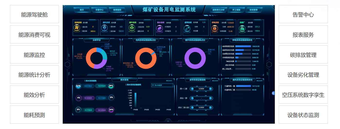 根據(jù)《煤礦及重點非煤礦山重大災(zāi)害風(fēng)險防控建設(shè)工作總體方案》要求,自主研發(fā)的礦山(煤礦)重要設(shè)備用電監(jiān)測系統(tǒng),幫助煤礦行業(yè)能耗體加強能源消耗日常調(diào)度、提升能源管理精細(xì)化水平、開展能源審計、審查以及節(jié)能改造投資等提供決策支撐服務(wù)。