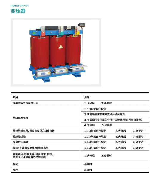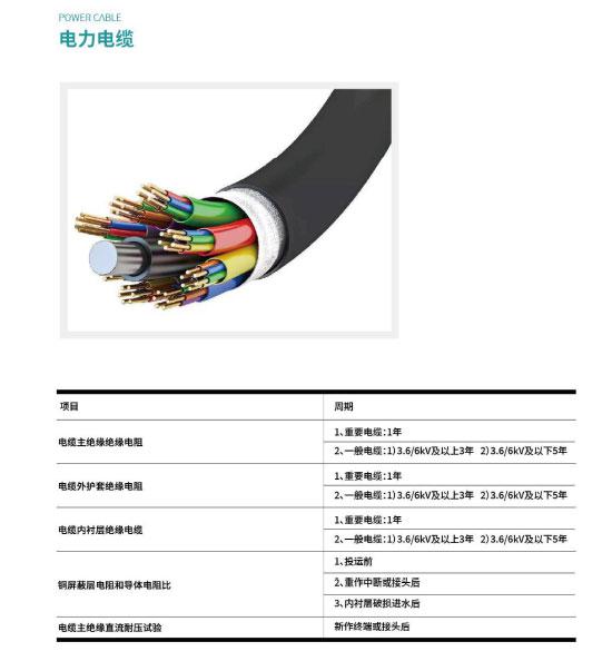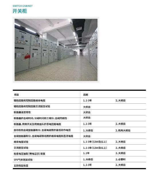 根據DL/T 596-2005《電力設備預防性試驗規(guī)程》要求,電氣設備需按照規(guī)范要求定期做預防性試驗及完成相應試驗項目,其中變壓器、電力電纜、真空斷路器和開關柜等主要的配電室內電氣設備的常規(guī)試驗項及周期如下所示。