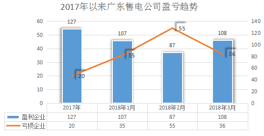 作為第一批列入全國售電側(cè)改革試點(diǎn)的省份,廣東引領(lǐng)了全國的電力改革,吸引了眾多行業(yè)內(nèi)人士的目光,售電市場活躍。然而進(jìn)入2018年,廣東的售電市場出現(xiàn)了疲軟回落現(xiàn)象,1月有35家售電公司出現(xiàn)虧損,2月,售電公司大范圍虧損,凈虧達(dá)到3600萬元,之后幾個月雖有所好轉(zhuǎn),但依舊是收利甚微。