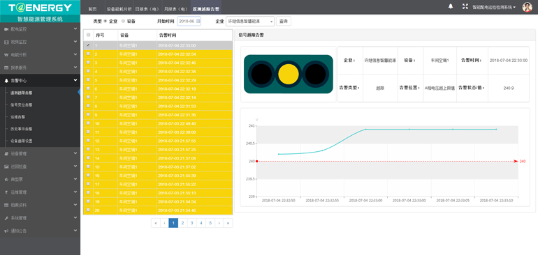 T@Power智能配電運(yùn)檢監(jiān)測(cè)管理系統(tǒng)是遵循電力系統(tǒng)的標(biāo)準(zhǔn)規(guī)范而進(jìn)行開發(fā)的智能電能管理系統(tǒng),具有穩(wěn)定性強(qiáng)、易使用、自動(dòng)化程度高等特點(diǎn),該系統(tǒng)主要偏重于企業(yè)配電的運(yùn)維管理,其核心功能分為6大板塊:能源看板、配電監(jiān)控、電能分析、生產(chǎn)管理、告警中心、報(bào)表服務(wù)。