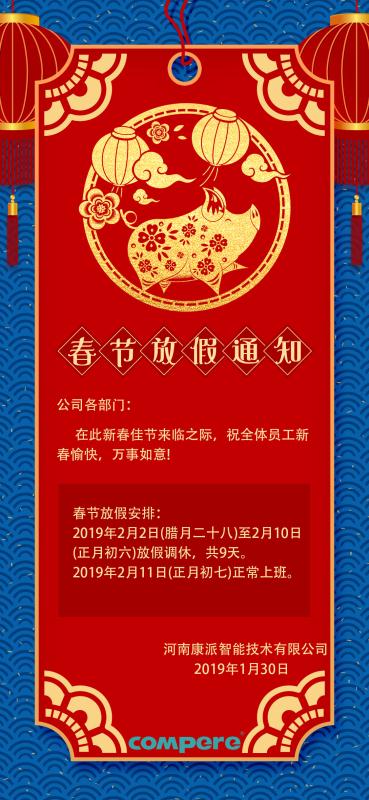 2019康派智能春節(jié)放假通知