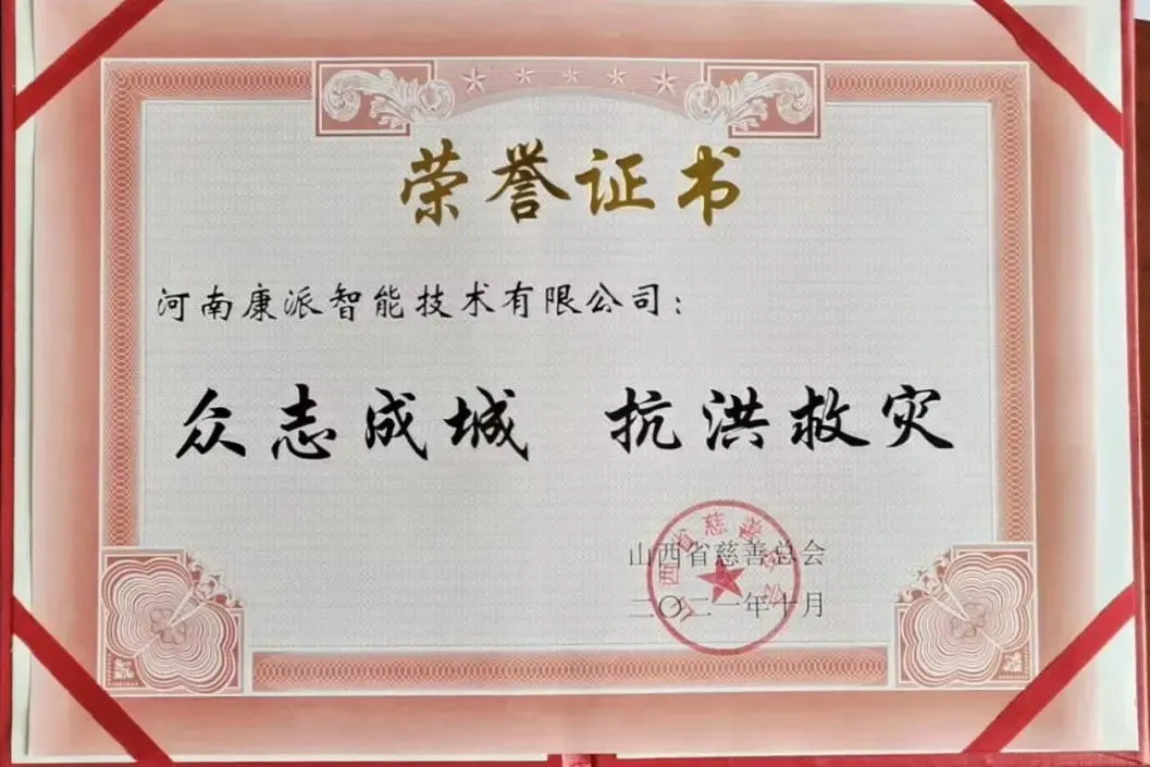 ②2021年8月,康派智能因在防汛救災(zāi)任務(wù)中作出了突出貢獻(xiàn),經(jīng)主管部門(mén)認(rèn)定推薦,被收錄進(jìn)《鄭州市防汛救災(zāi)和疫情防控工作社會(huì)信用紅榜名單》,將在政府政策扶持、信用貸款、評(píng)優(yōu)評(píng)先等方面享受惠民便企政策。