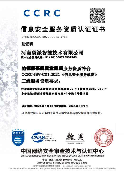 CCRC認(rèn)證證書